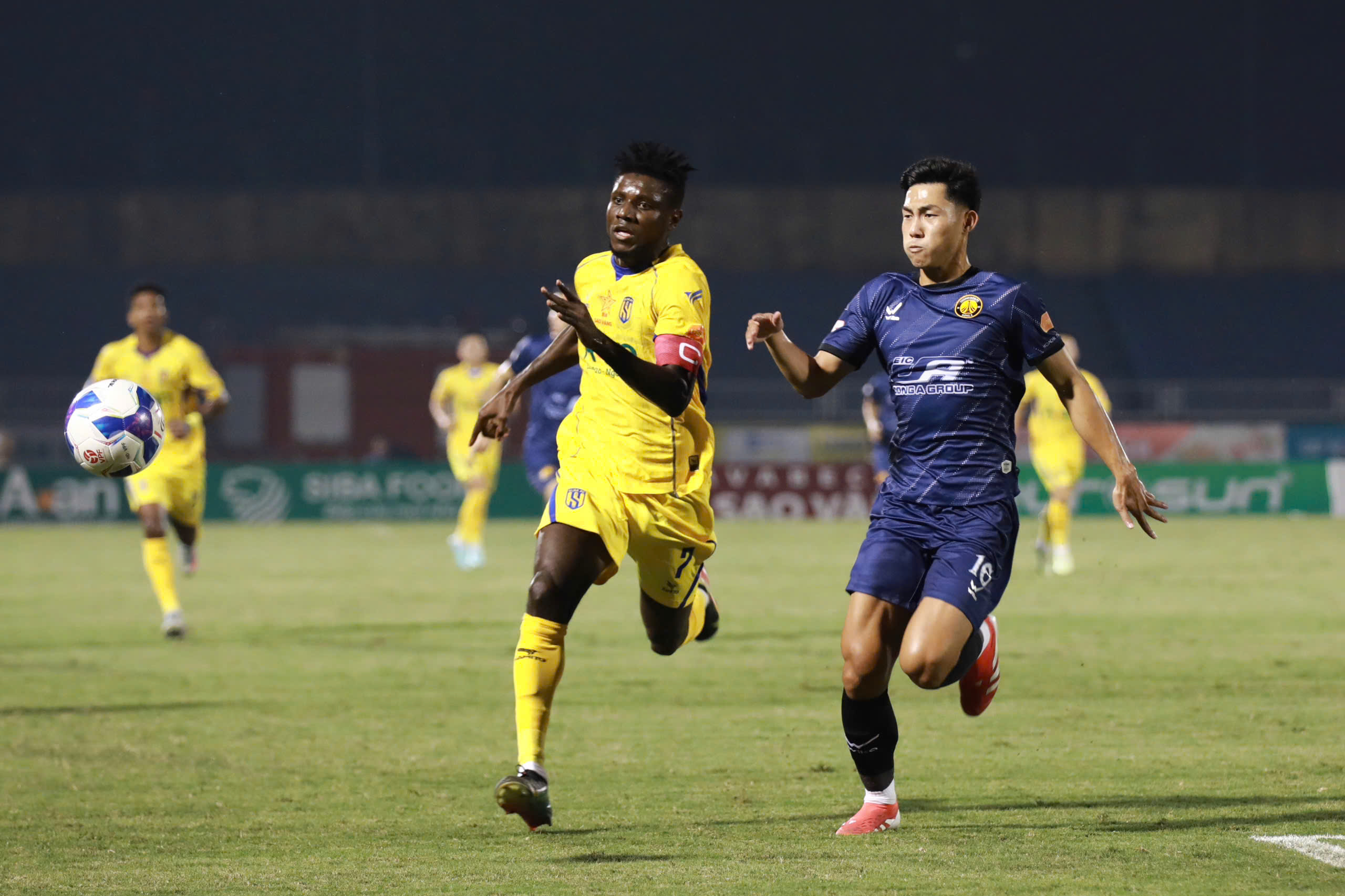 Ngay sau tiếng còi khai cuộc, Sông Lam Nghệ An chủ động kiểm soát thế trận và dâng cao tìm kiếm cơ hội.